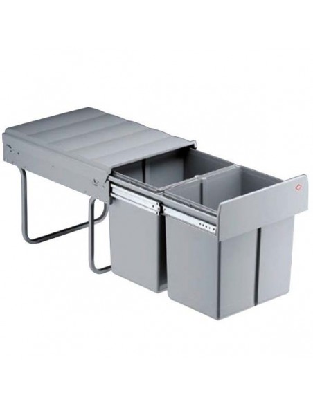 Cubo de basura de gran calidad fabricado en Alemania, con 2 cubetas extraíbles en color gris de 16L cada una y con guías de extracción total. El cubo Double Master aporta un toque de elegancia y funcionalidad en la cocina que se instale.