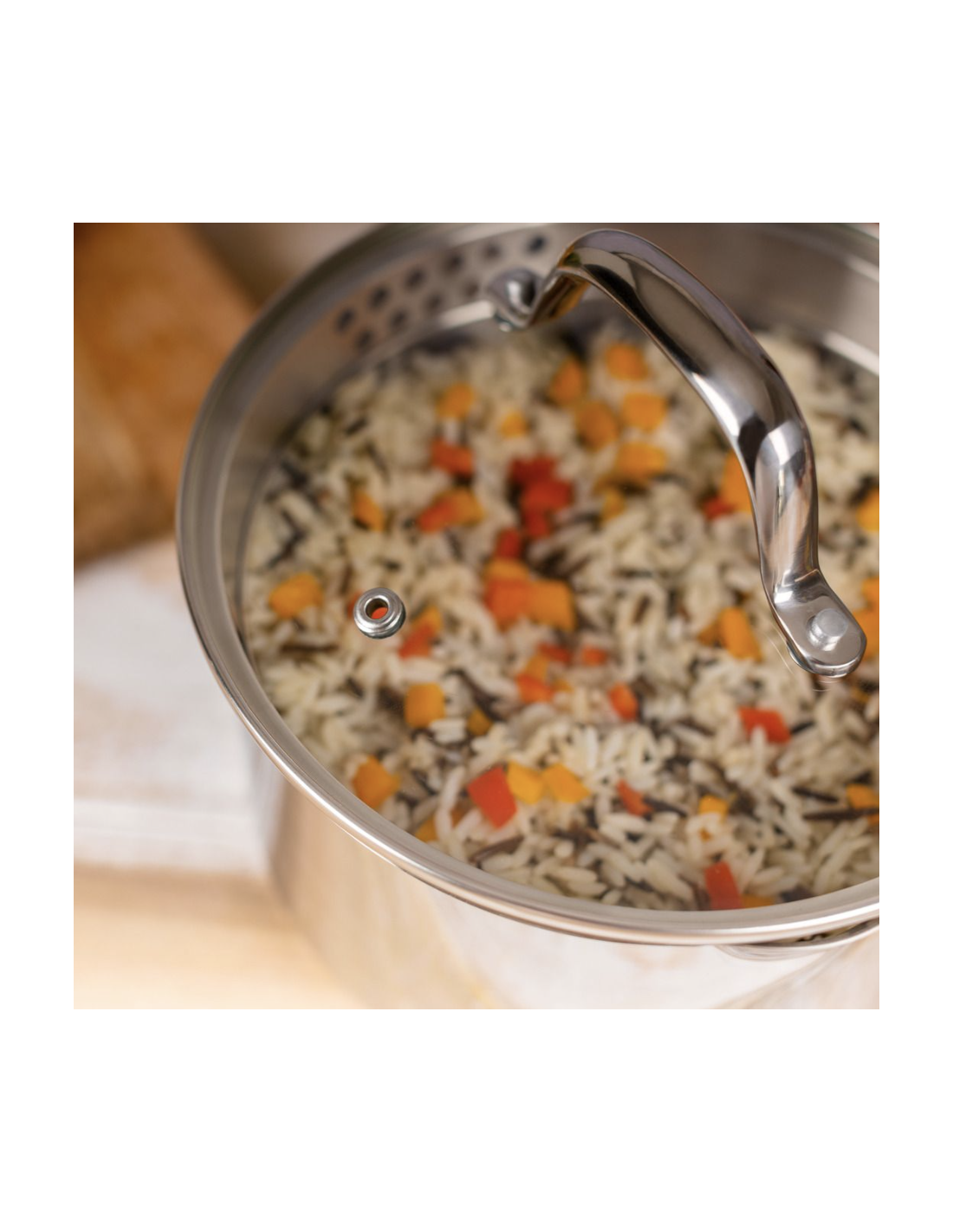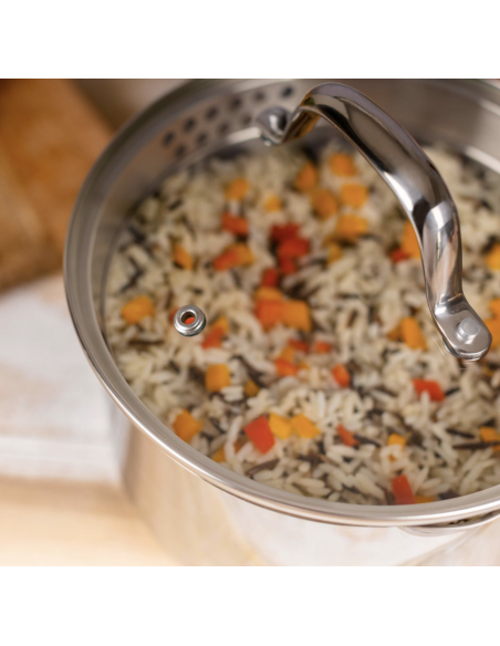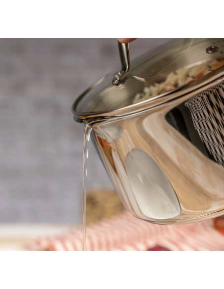 Mango sólido y ergonómico, cómodo de manejar y seguro durante la cocción.