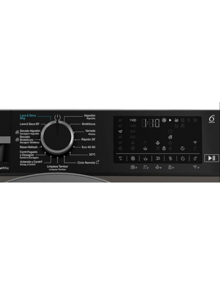 · Funciones adicionales: Tecnología 6th Sense, Steam Technology, Steam Refresh, Sense Wash, Adaptive Wash, Limpieza del tambor