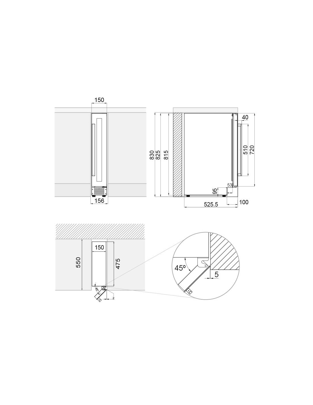 - Dimensiones: 150 x 825 x 525 mm